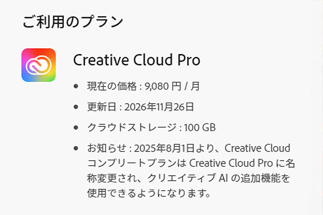 月額 7,780円 → 9,080円(+1,300円)に値上げデス…💦廉価プランの「Creative Cloud Standard」を選べば、