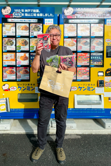 そして、いつもの流れで「ケンミン食品篠山工場」へ!駐車場の自動販売機で