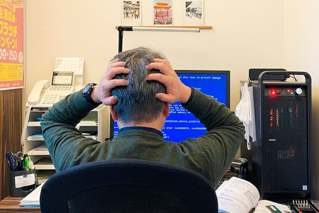 「デスクトップパソコンの調子が悪くて頭を抱える人」と