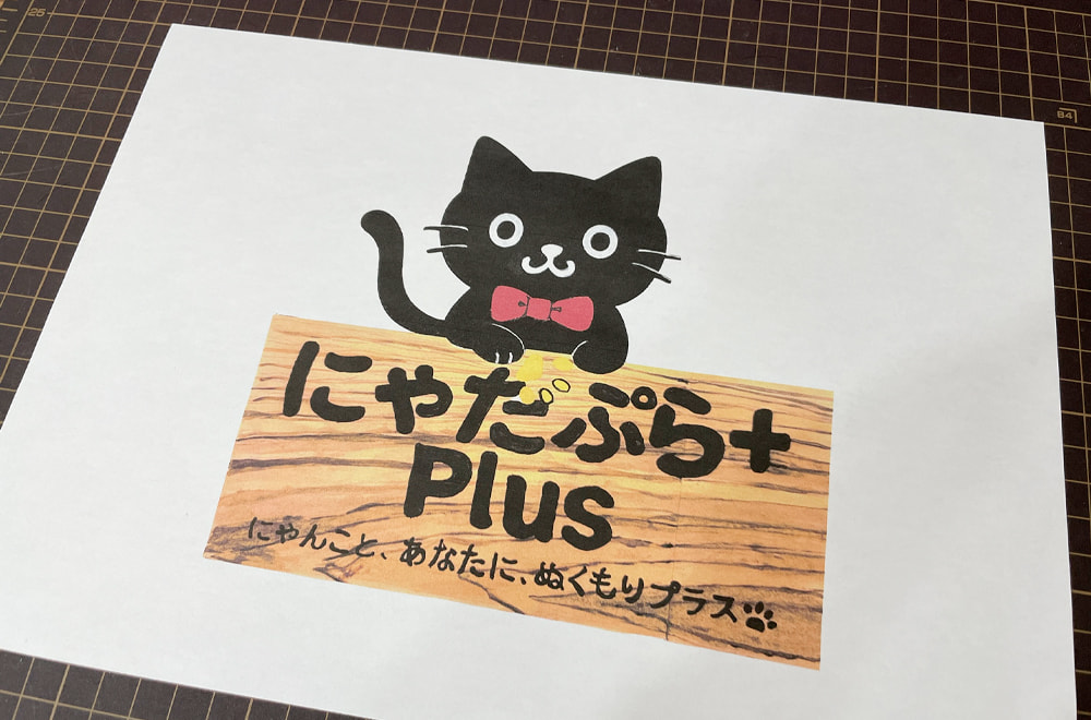 ●「肉球」や「+」の扱いをどうするか などネコのイラストは手描きの魅力が生きるよう丁寧に再現し、文字は既存のフォントに角丸加工を施しながら、「肉球」や「+」を自然に組み込んだ形に仕上げました。