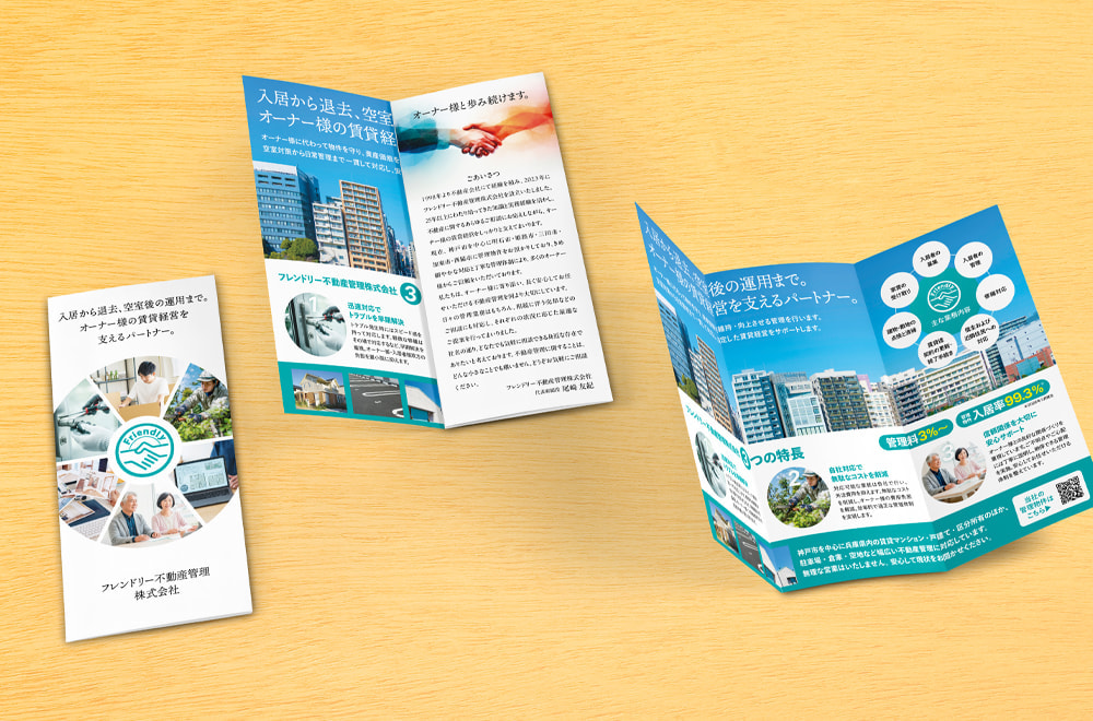 フレンドリー不動産管理/会社案内リーフレットデザイン(A4・巻三つ折り)